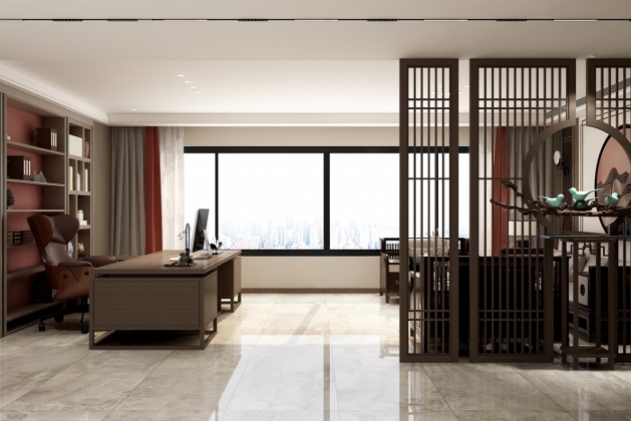 新中式工作室裝修設(shè)計(jì)案例通常融合了傳統(tǒng)中式元素與現(xiàn)代設(shè)計(jì)理念,旨在創(chuàng)造既具有文化底蘊(yùn)又不失現(xiàn)代感的工作環(huán)境。 注重功能分區(qū),合理規(guī)劃辦公區(qū)域、會議室、休息區(qū)等空間,以滿足不同功能需求。保持空間的開闊與通透,增加自然光照,營造舒適的工作氛圍。